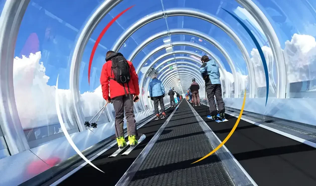 Die Funbelt-Förderbänder zeichnen sich durch ihre robuste Bauweise, ihre Zuverlässigkeit und ihr hohes Sicherheitsniveau aus, insbesondere dank der Integration von Schutzgalerien, die den strengsten Sicherheitsanforderungen entsprechen. Diese Lösungen eignen sich besonders für die spezifischen Umgebungen in Skigebieten.